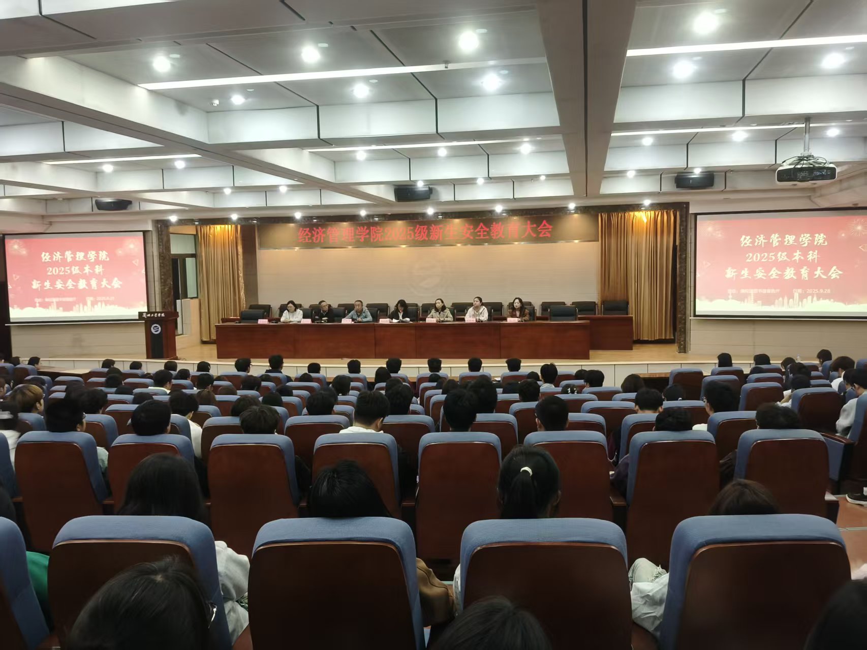 9月28日下午,经济管理学院在七里河校区图书馆学术报告厅举办2025级新生安全教育大会。