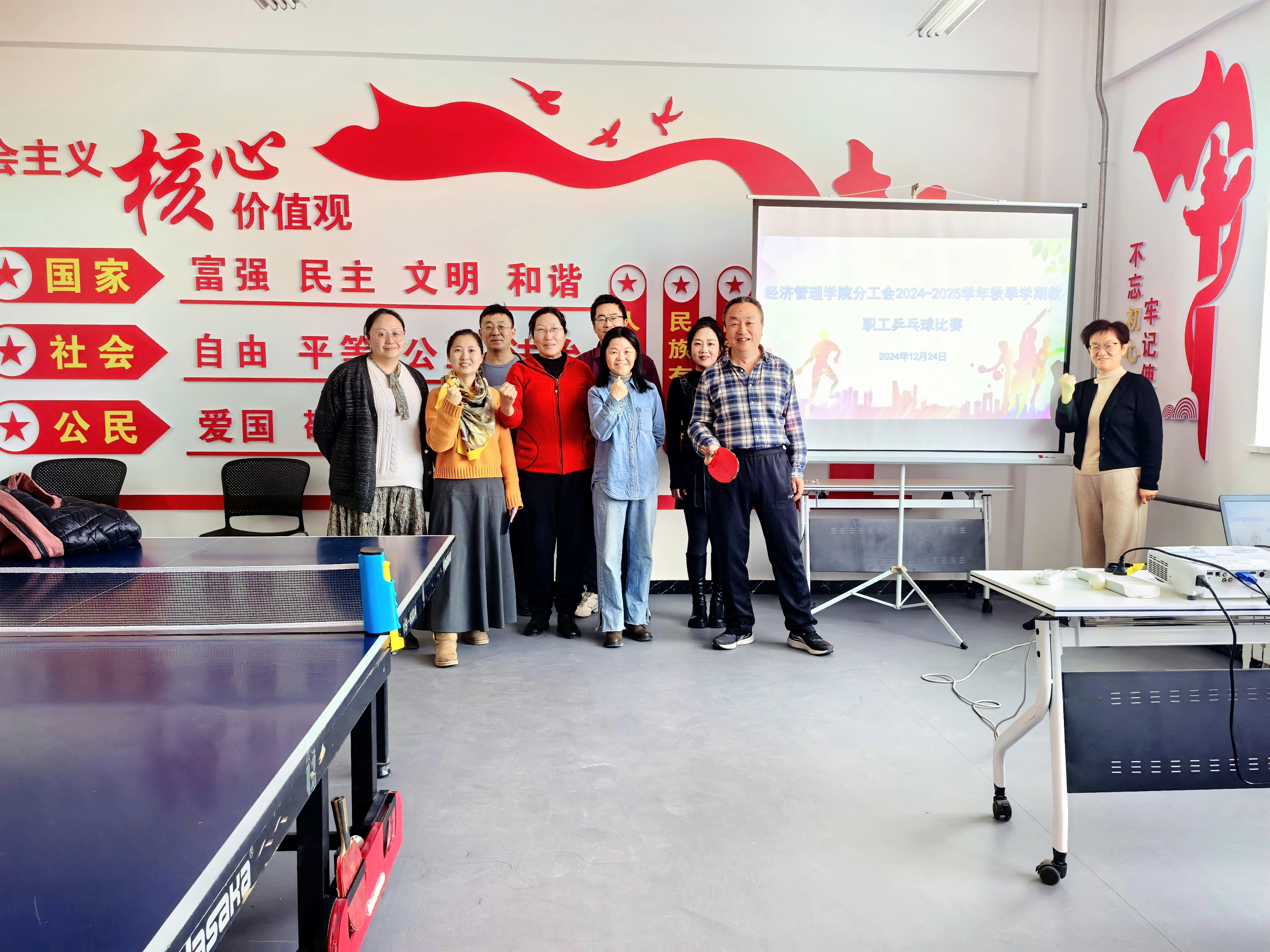 为丰富经济管理学院教职工的精神文化生活,2024年12月24日,经济管理学院分工会组织部分教职工举行了一场精彩的乒乓球友谊比赛。