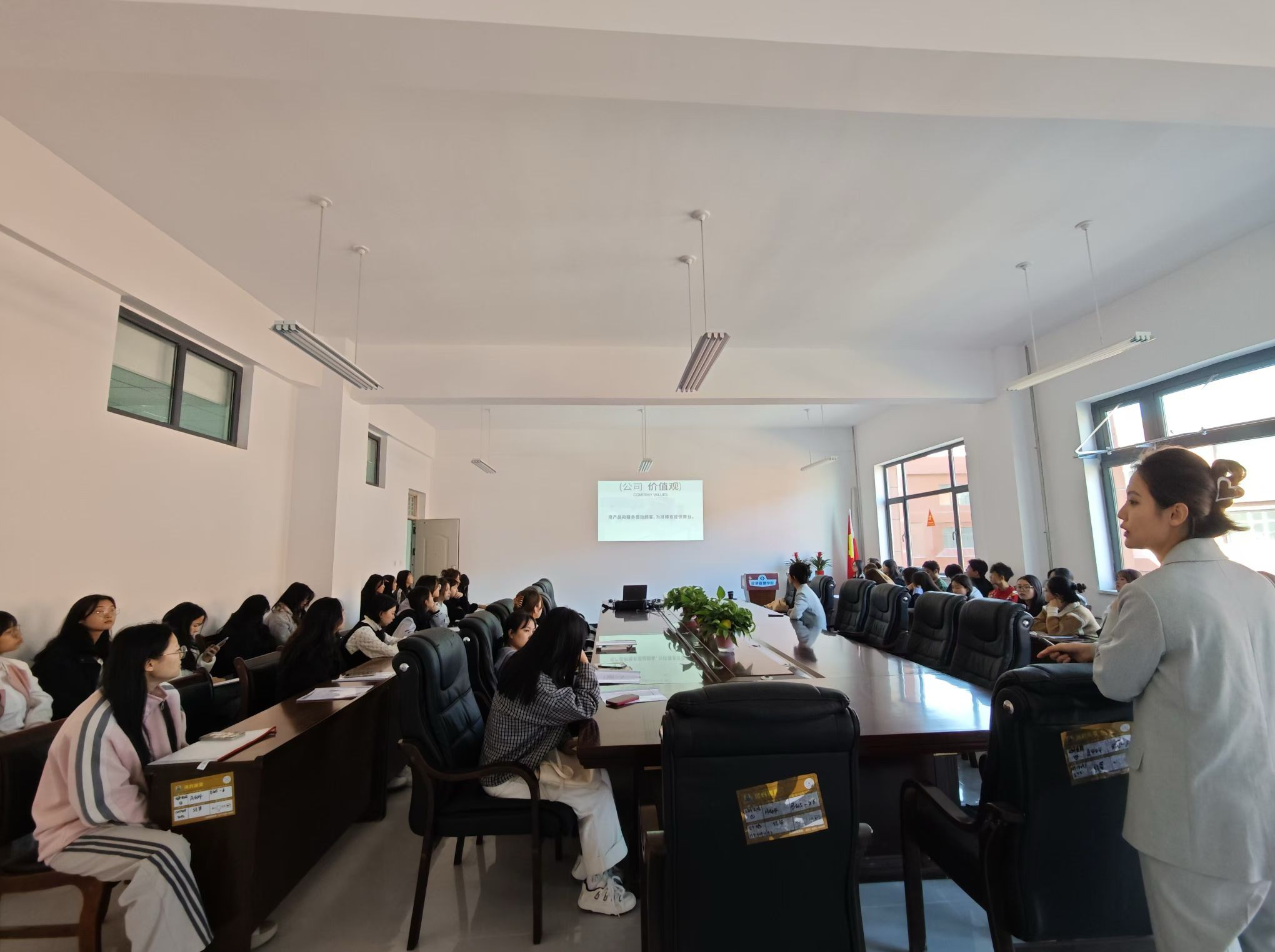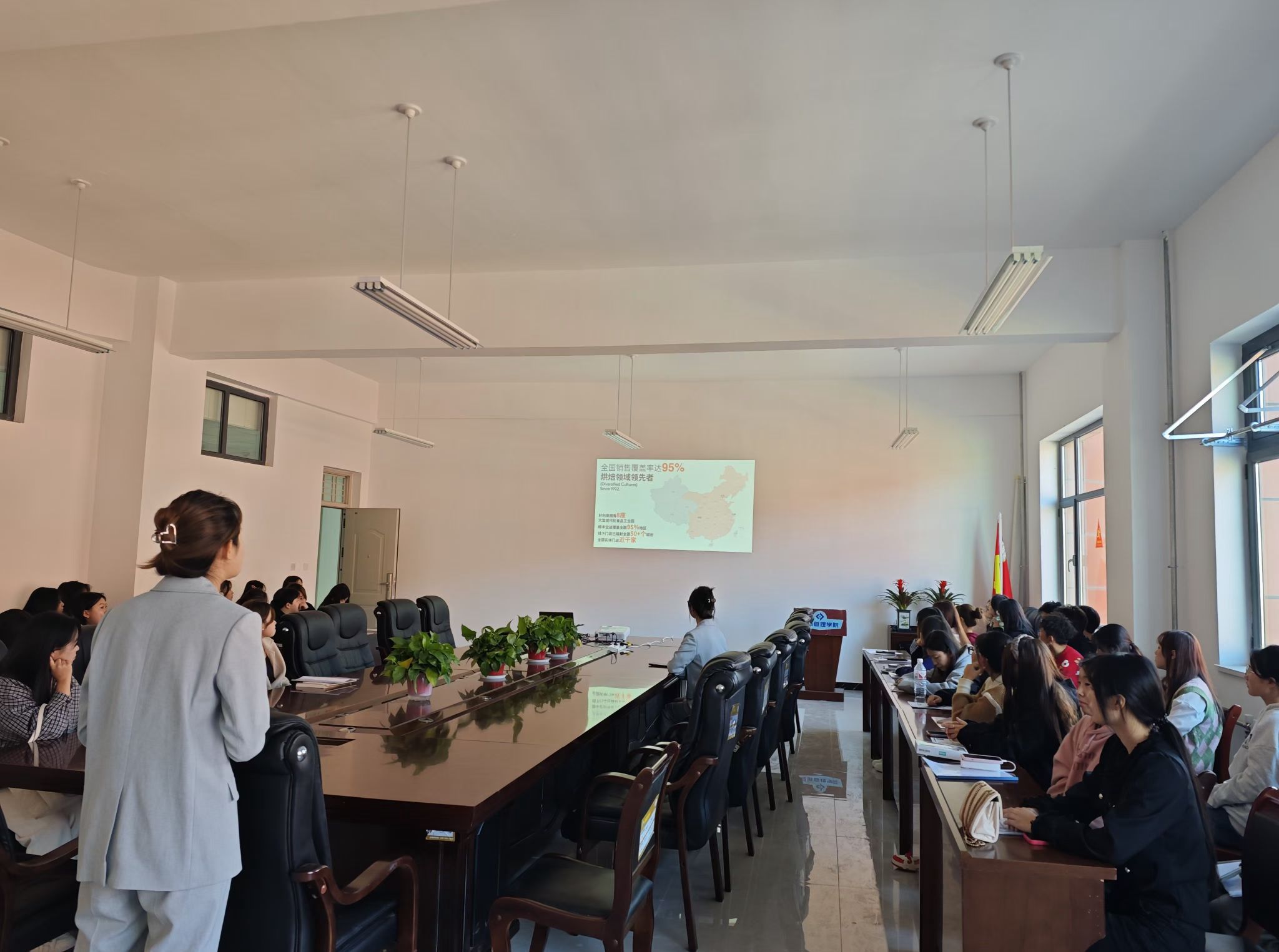 为进一步抢抓招聘黄金期,把握优质就业岗位,全面推动和提升我院2025届毕业生就业质量,10月23日下午,经济管理学院邀请好利来食品有限公司西安区域负责人许凯华经理一行到学院举办专场校园招聘会。学院领导、毕业班辅导员和全体2025届毕业生参加了此次活动。