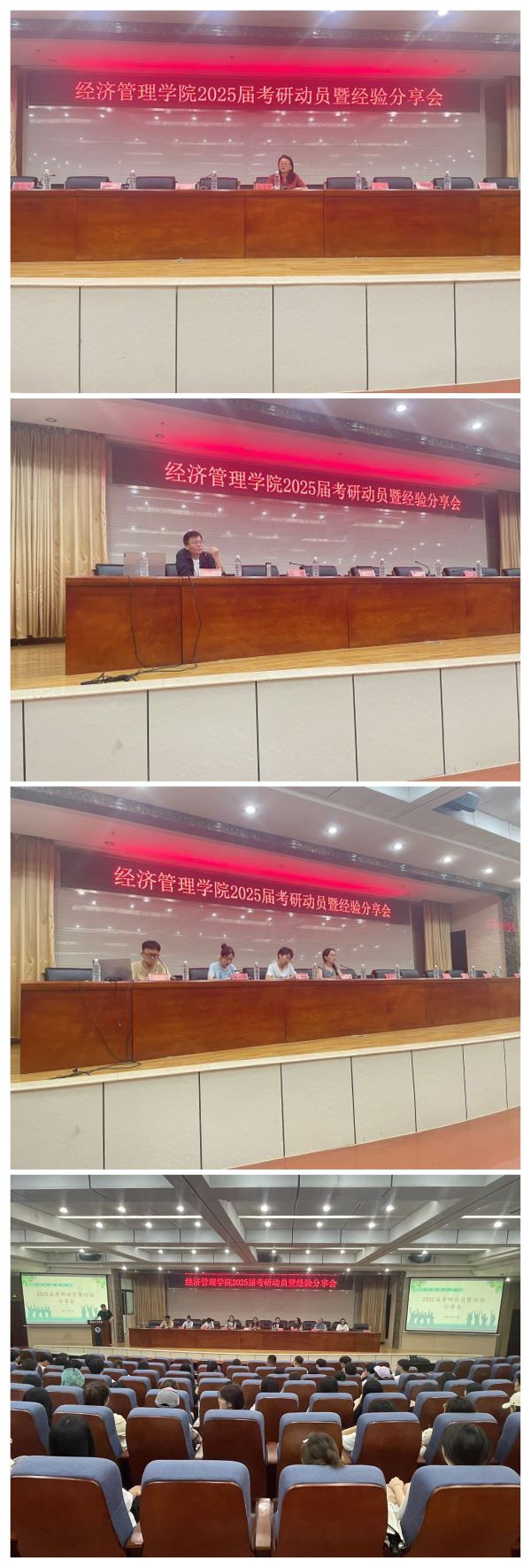 6月18日晚,经济管理学院在图书馆报告厅举办了2025届考研动员暨经验分享会。讲座邀请四名2020级优秀考研学生代表、考研名师董珺作考研经验交流与指导分析。学院党委书记杨亚萍主持会议,200多名学生参会。