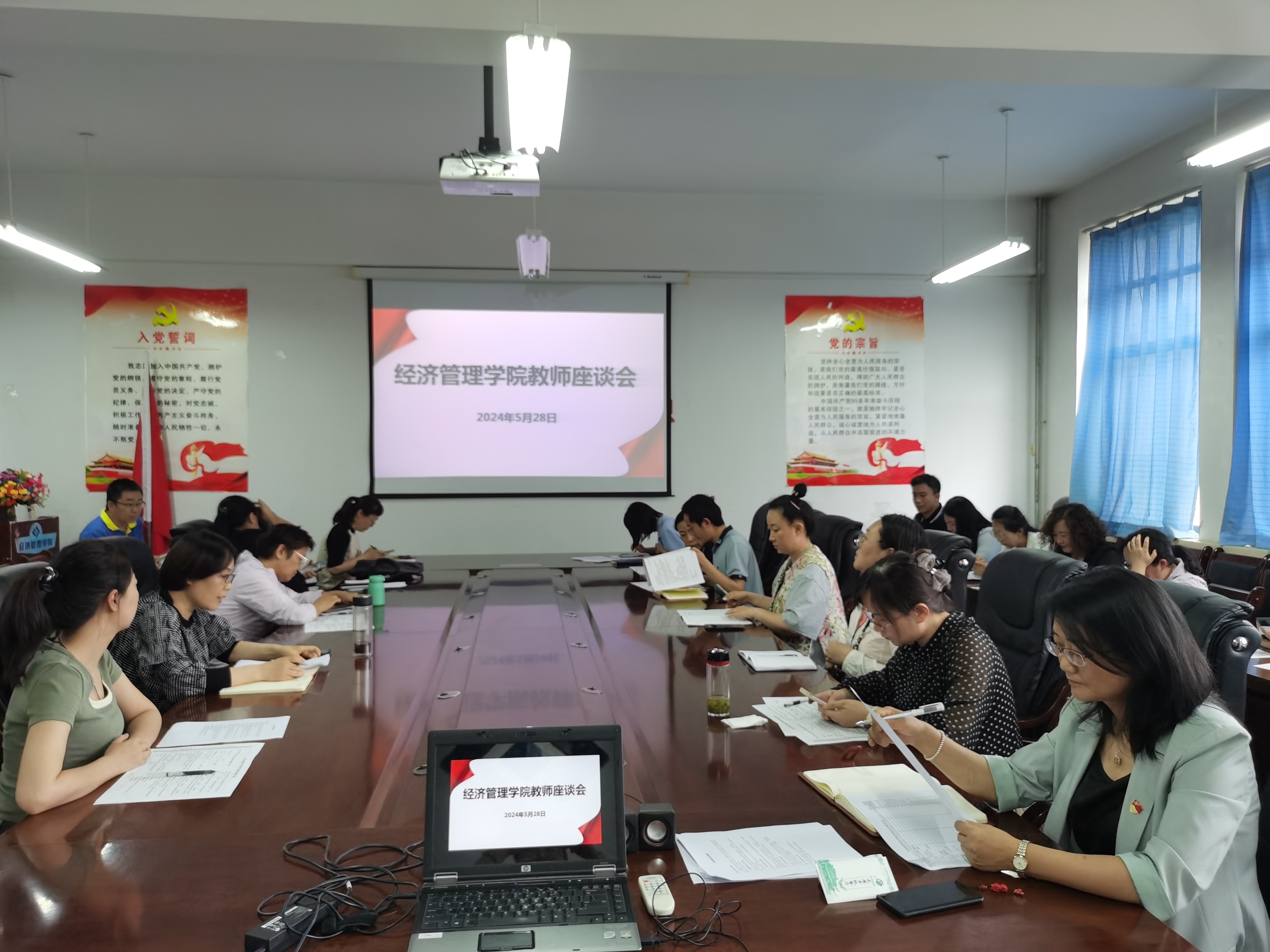 教师座谈会上大家畅所欲言,积极建言献策。老教师分享在教学过程中的成功案例与经验做法;新教师分析当前教学中取得的成绩、存在的挑战与困难,并讨论可能的解决方案;探讨如何进—步优化教学方法与手段,提高课堂教学质量;青年教师对前期已院级立项项目在科研领域的最新成果与进展汇报;交流科研项目申报、实施与管理方面的经验;讨论如何加强科研团队建设,提升整体科研水平;针对学生培养与服务方面和资源保障与改善等提出意见与建议。