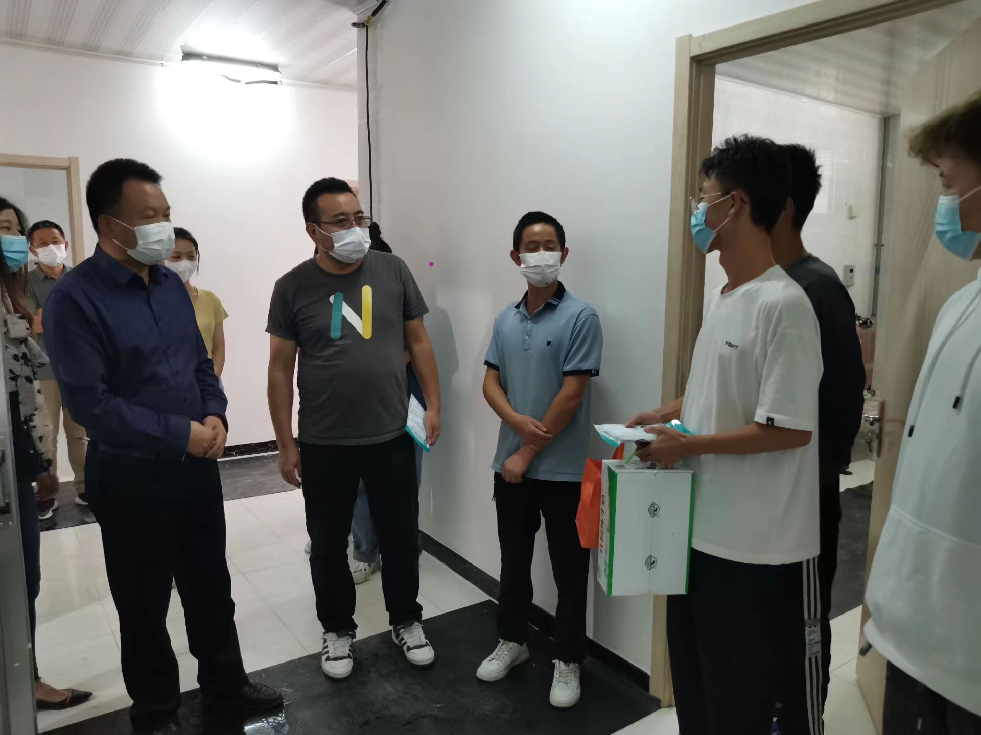 走访过程中,戴院长、牛书记与同学们亲切交流,详细了解返校过程、在线学习及报到后的感受,鼓励大家积极适应新环境、融入新集体,遇到任何困难随时联系老师,学院将在第一时间予以帮助解决。并倡议新同学们要养成良好的生活卫生习惯、保持积极健康的心理状态、学习优秀传统文化,尊师敬长、团结友爱,展现经管学子的作为与担当。