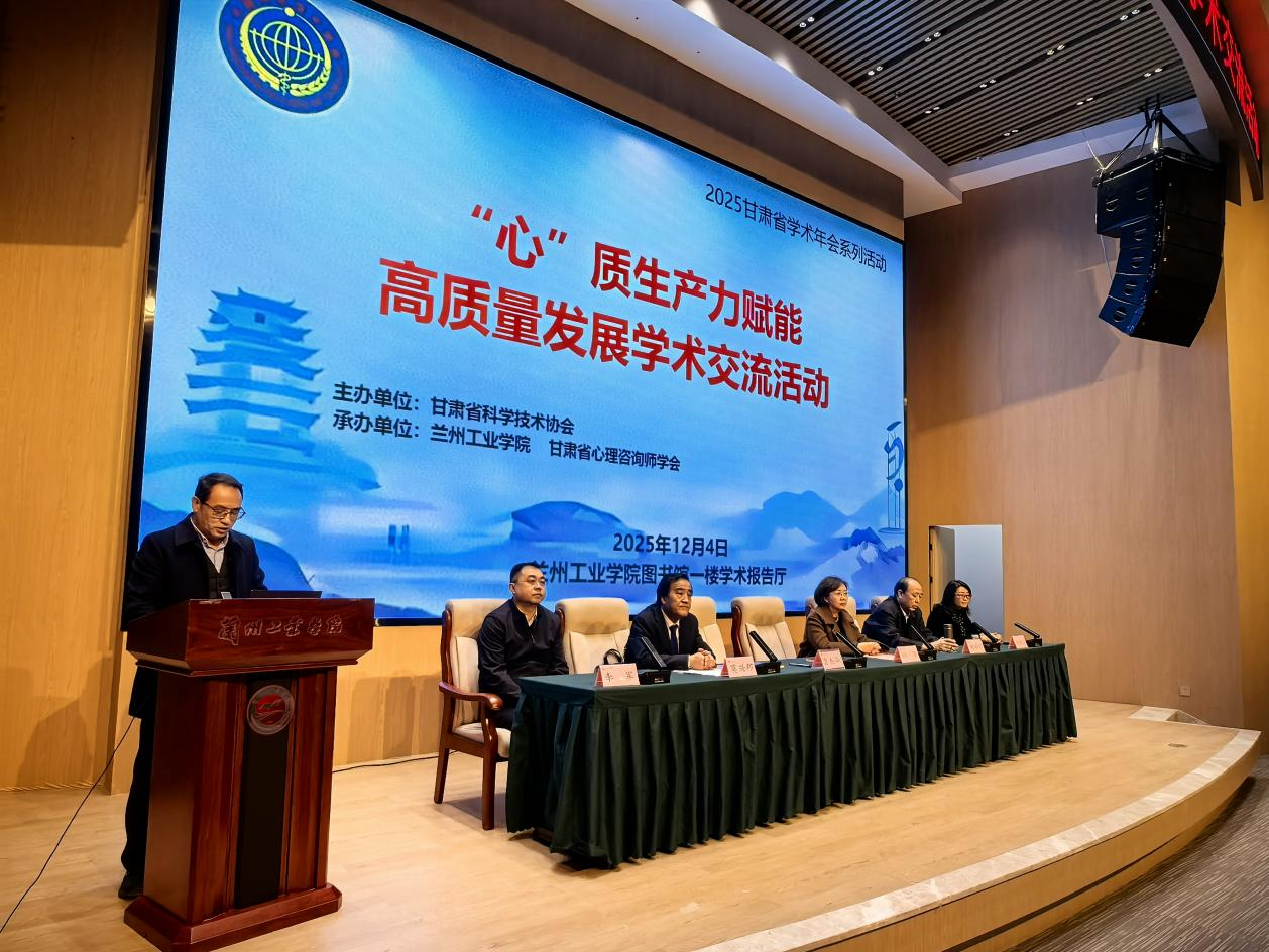12月4日,2025年甘肃省学术年会系列活动——“心”质生产力赋能高质量发展学术交流活动在我校成功举行。副校长贾杰华出席并讲话。活动由甘肃省科协主办,我校经济管理学院与甘肃省心理咨询师学会联合承办,120余名专家学者及师生代表齐聚一堂,共探人文科技融合赋能甘肃发展新路径。活动由经济管理学院院长戴德锋主持。