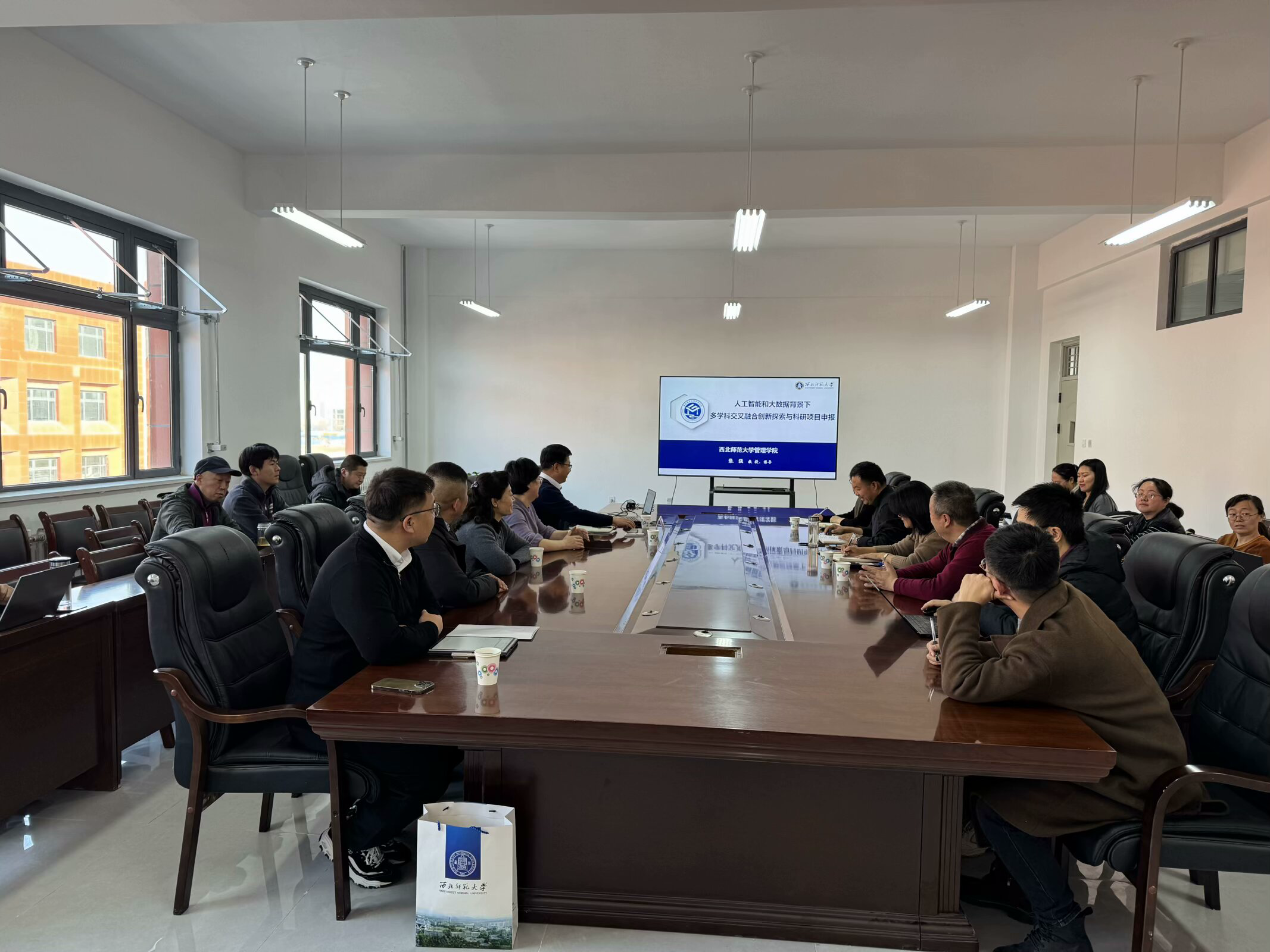 12月19日,西北师范大学管理学院党委书记、管理学博士、博士生导师张强教授应邀为经济管理学院作了题为《人工智能和大数据背景下多学科交叉融合创新探索与科研项目申报》学术报告。经济管理学院全体教师参加报告会,学院院长戴德锋主持报告会。
