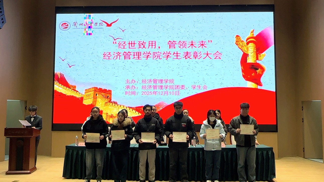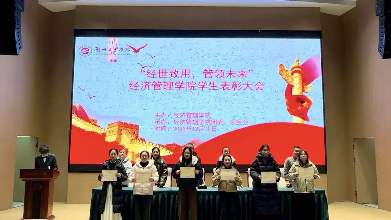 12月10日,兰州工业学院经济管理学院“经世致用,管领未来”学生表彰大会在图书馆报告厅举行,学院何书记、及全体辅导员出席活动,51名“三好学生”、39名“优秀学生干部”齐聚现场。本次大会以树立榜样、弘扬学风为核心,通过规范有序的流程,顺利完成表彰环节并达成激励学子的目标。