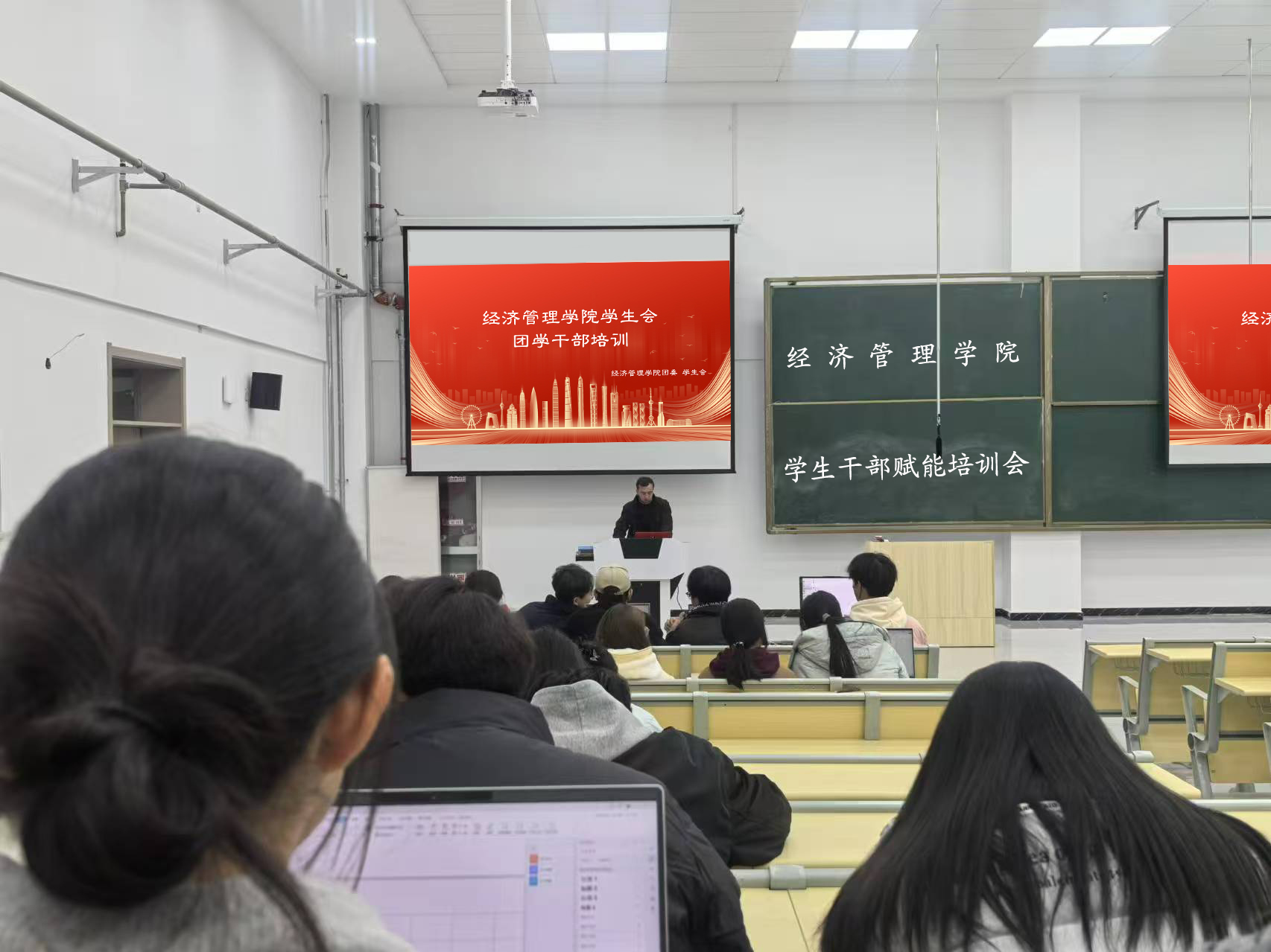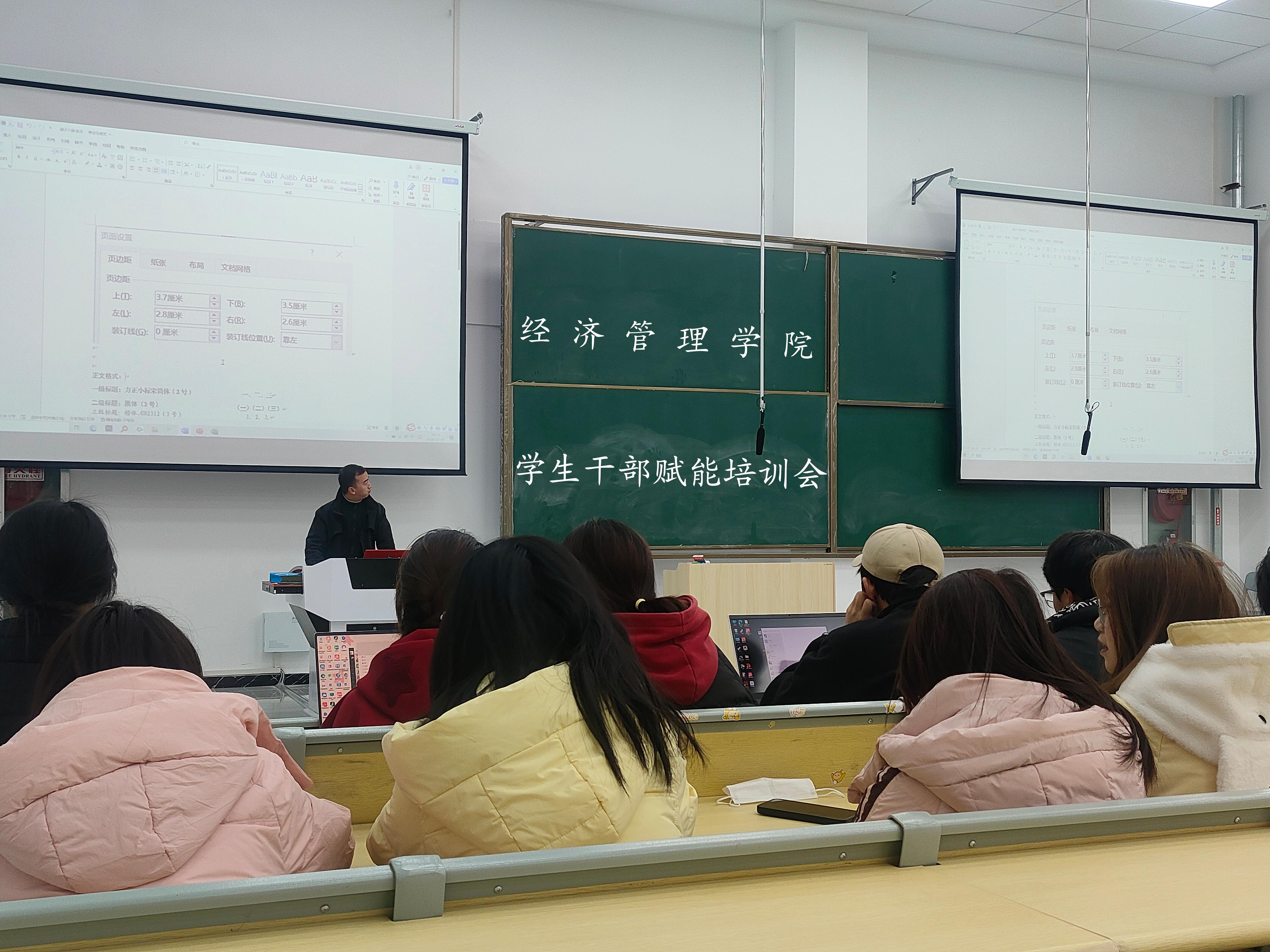 为加强学院团委学生会组织建设,提升学生干部工作能力,经济管理学院于12月8-12月9日晚在公共教学楼E101举办学生干部赋能培训,全体大一班长、团支书,学院学生会全体成员参加本次培训。